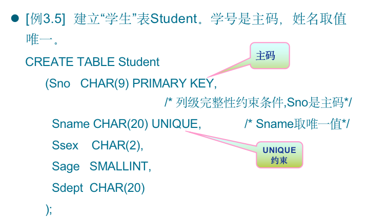 - <列级完整性约束条件>:涉及相应属性列的完整性约束条件