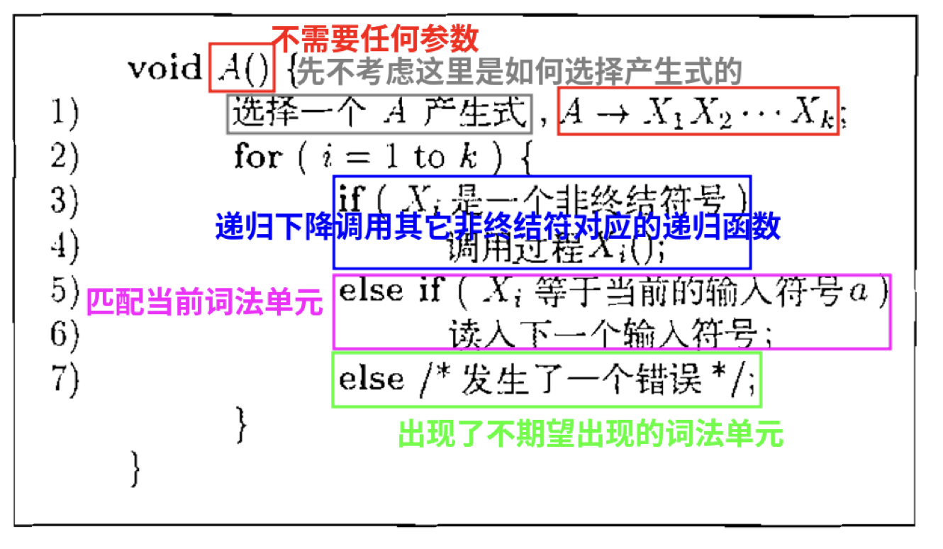 内部按需调用其它的非终结符对应的递归函数,下降一层