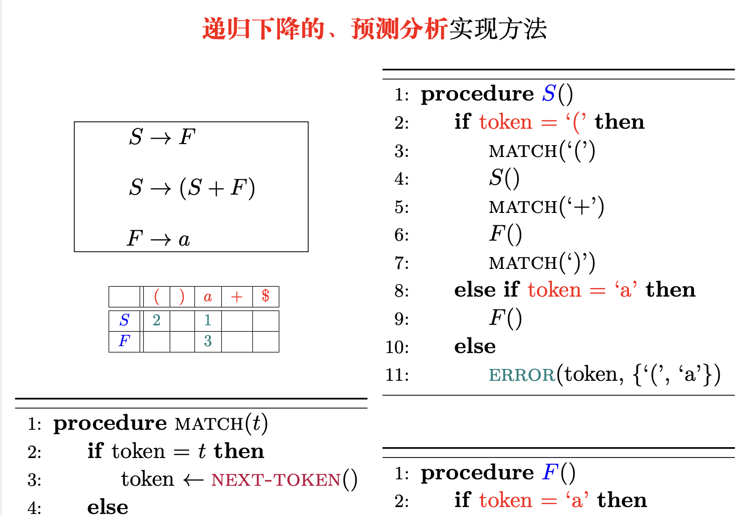 为每一个非终结符写一个递归函数