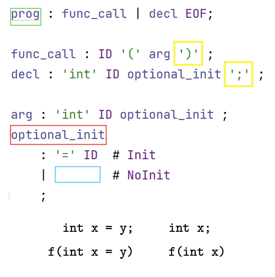 仅包含终结符与特殊的文件结束符$$(EOF)$