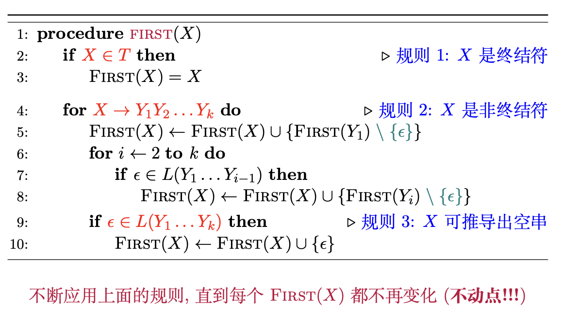 先计算每个符号 $X$ 的 $First(X)$ 集合