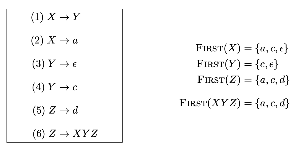 - 文法中不存在$\epsilon$产生式(形如$A \rightarrow \epsilon$的产生式)