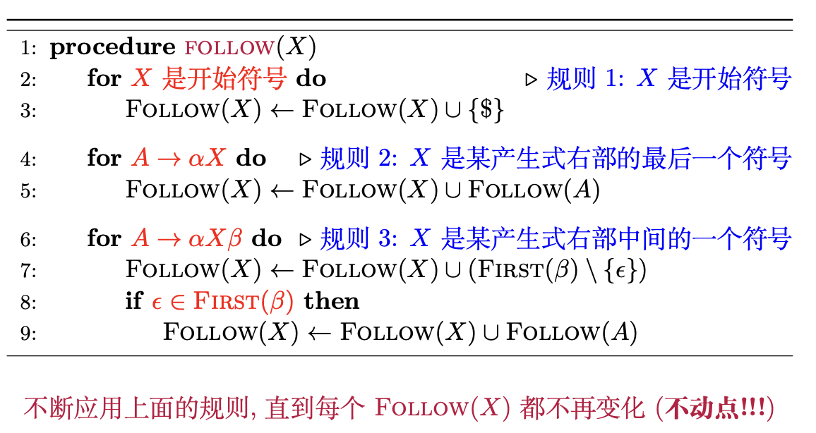 为每个非终结符 $X$ 计算 $Follow(X)$ 集合
