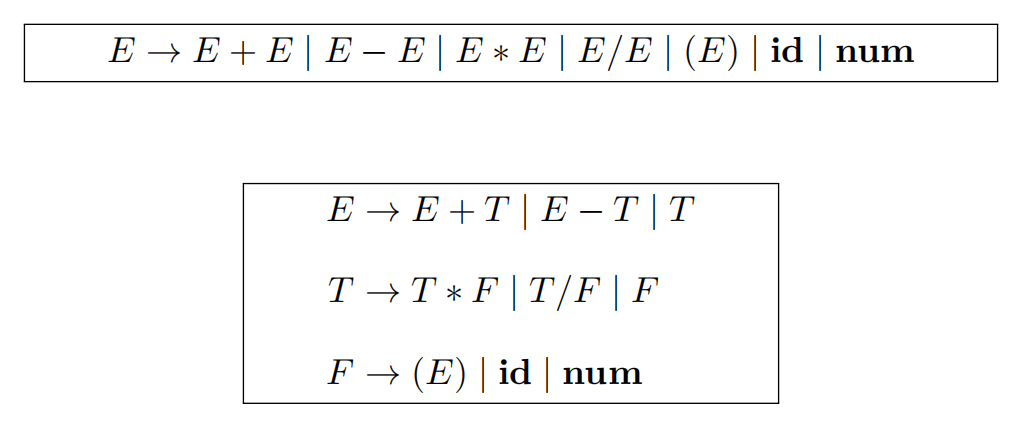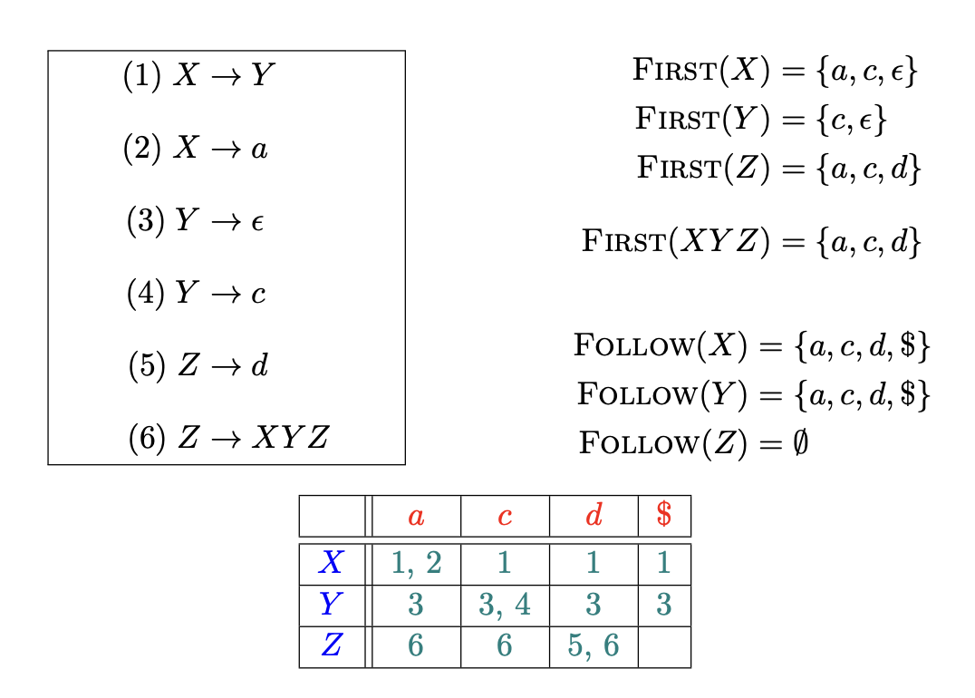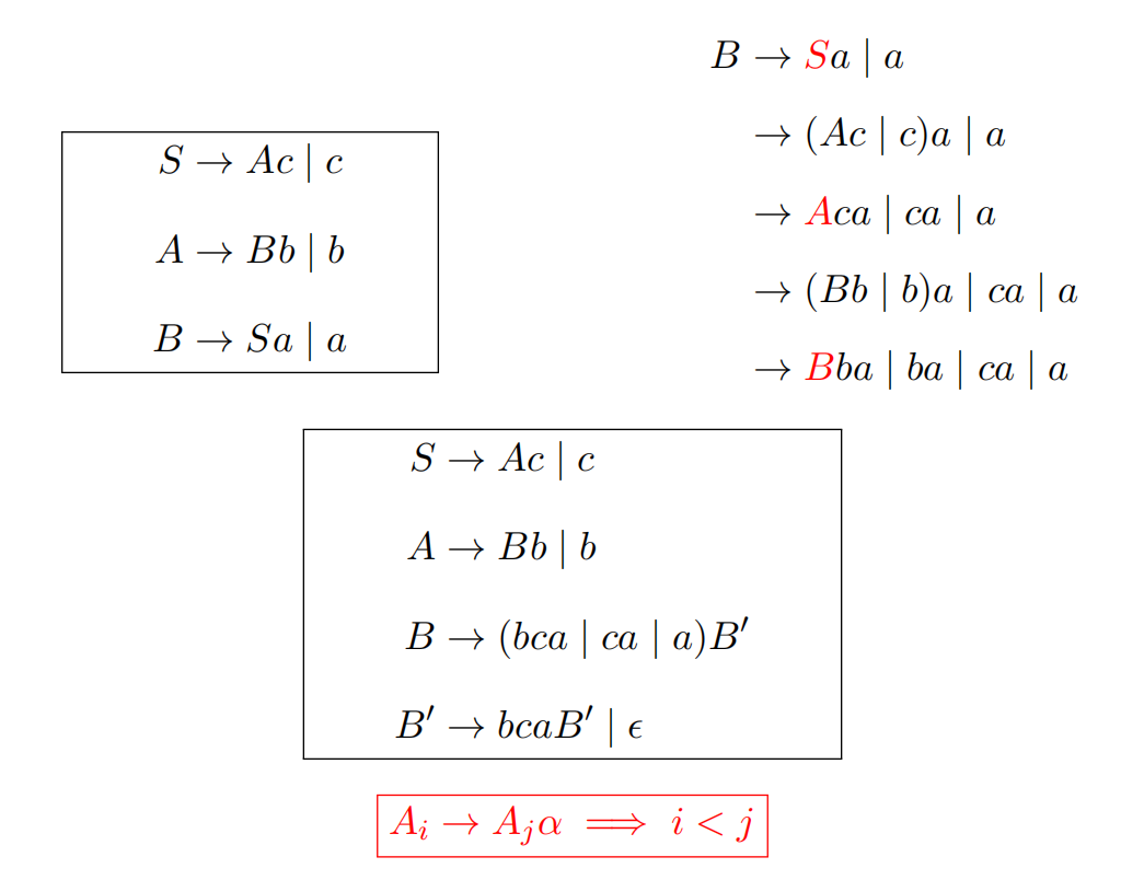 - 文法中不存在环(形如$A \stackrel{\mathrm{*}}{\Rightarrow} A$的推导)
